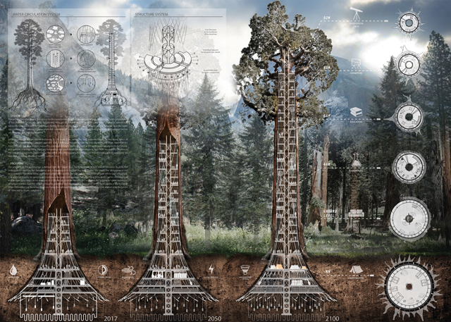 Idejni plan tima projektanata iz Južne Koreje tiče se „umetanja“ kula unutar šupljih džinovskih sekvoja u zapadnom delu SAD.