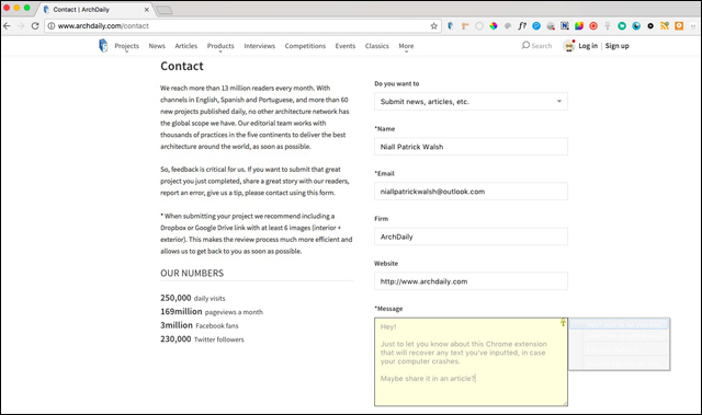 Svi su se susreli u životu sa tim da fajl nestane iznenada i ne ostane ništa sačuvano. Srećom, ovaj Chrome dodatak će sačuvati sve što se radi, kako bi se izbegla vremenska ograničenja i „padovi“ koji bi proizrokovali gubitak i nestajanje fajlova. Preporuka je da se koristi kod unosa osetljivih, ličnih podataka.