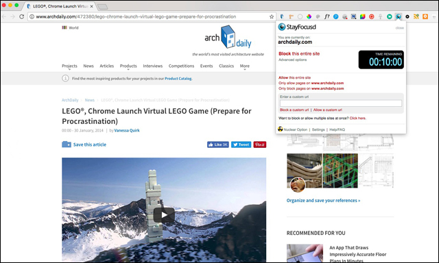 Uz moć Interneta dolazi i odgovornost da se izbegne odugovlačenje. Sa rokovima koji dolaze i sastancima sa klijentima koji predstoje, ovo proširenje će blokirati sve neželjene smetnje i omogućiti fokusiranost na posao. Uostalom, sve ovo će i dalje biti tu prisutno i kada se posao bude završio.