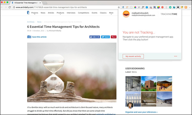 Upravljanje vremenom je nešto sa čime se arhitekte svakodnevno bore, s obzirom na nepredvidive prirode procesa projektovanja. Ovaj dodatak se može povezati sa popularnim alatima kao što su Google Calendar i Outlook, a poseduje i „start-stop" funkciju koja pokazuje iskorišćeno vreme na projektnim zadacima.