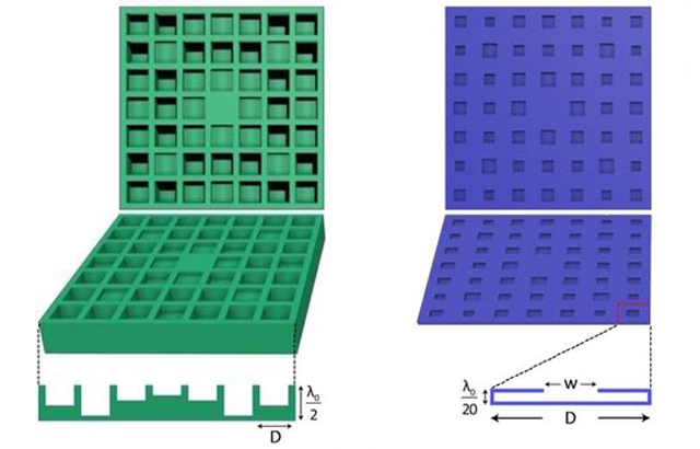 Slika. Levo je standardni Schroederov difuzor a desno novi ultra tanak Schroederov difuzor (foto: North Carolina State University, preuzeto sa www.newatlas.com)