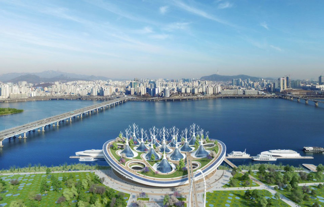 „Yeoui-Naru“ plutajući terminal za trajekte na tri nivoa će viriti iz parka i nalaziće se iznad marine i vrtova. Na nižim dokovima će biti marina koja se sastoji od povezanog čeličnog nasipa integrisanog s opremom za punjenje plovila sa vodom, strujom i biogorivom. Iznad marine će se prostirati konstrukcija u obliku raže u okviru koje će biti smeštena recepcija, a tu će se takođe nalaziti i prostor za slobodne aktivnosti, prehrambeni deo, izložbeni prostor i obrazovne prostorije. Konstrukcija ima formu stabla i izrađena je od unakrsno-lameliranog drveta koji potiče iz „eko-odgovornih korejskih šuma". Na najvišem vrhu nalazi se vidikovac s pogledom na Ban ostrvo, a tu je takođe i voćnjak.