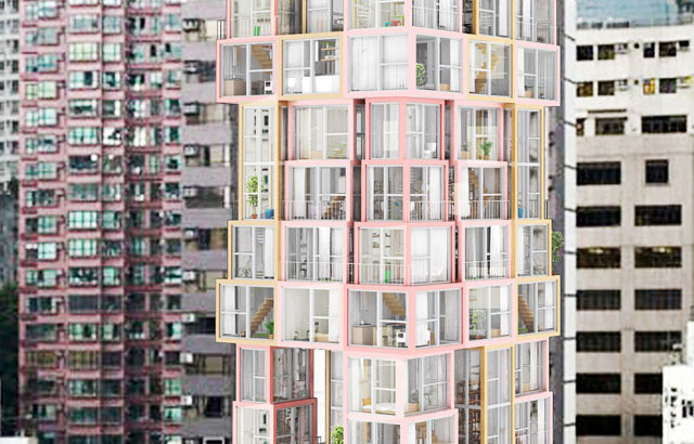 Projekat pod nazivom „Towers within a Tower" koji je predložila firma Kwong Von Glinow Design Office, tiče se dovođenja „urbane vertikalnosti“ u Hong Kong i u same stambene jedinice. Stambene jedinice za koje je tipično da budu horizontalno raspoređene, u okviru ovog projekta se nalaze jedna na drugoj pa ih karakteriše vertikalni raspored. Zbog toga svaka stambena jedinica postaje neka vrsta kule za sebe. Kada se naslažu jedna pored druge, one daju zajedničke spoljne prostore na svakom nivou. Posmatrajući sa spoljašnje strane stanovnici tačno znaju da je to njihova kula.
