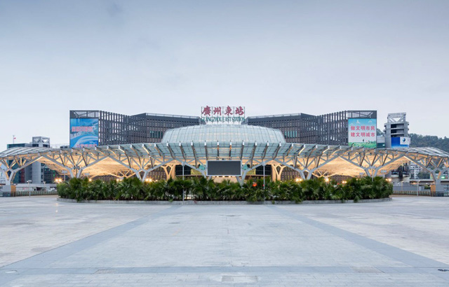 Jedan od najvećih železničkih terminala u Kini nedavno je renoviran i dobio je veliki hol sa glavnim ulazom koji karakteriše prekrasna nadstrešnica koja propušta dnevnu svetlost. Architectural design and Research Institute of SCUT obnovio je znamenitu „East Railway Station“ u Guangdžou postavljajući veštačkie pejzažne elemente, popravljajući javne površine i uvodeći niz pogodnosti koje zadovoljavaju zahteve moderne železničke stanice.