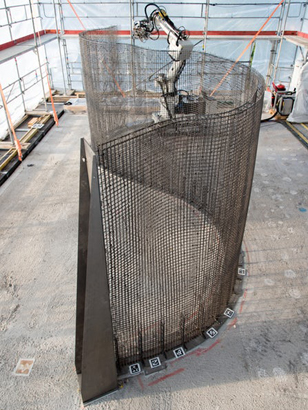 U videu ispod se možete videti kako robot graditelj gradi dvostruko zakrivljeni mrežasti zid.