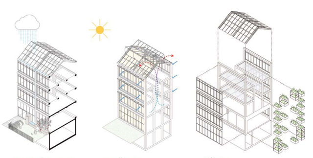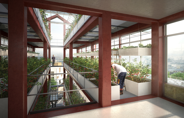 Francuska arhitektonska firma Ilimelgo u svom pobedničkom rešenju upućuje na to da je budućnost u urbanoj zemljoradnji. Ovaj vertikalni kompleks je planiran da bude u Romenvilu, predgrađu Pariza. Projekat integriše proizvodnju proizvoda u gradu kroz staklenik od 1000 kvadratnih metara koji maksimizira sunčevu svetlost i prirodnu ventilaciju. Prepoznajući manjak poljoprivrednog prostora u svetu, projekat ima za cilj da se zadovolje sve veći zahtevi za obrađivanjem useva u urbanim sredinama.