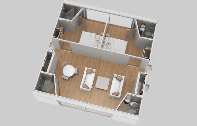 Slika 4. Više modularnih jedinica može da formira hotel (foto: Ten Fold Engineering, preuzeto sa www.newatlas.com)