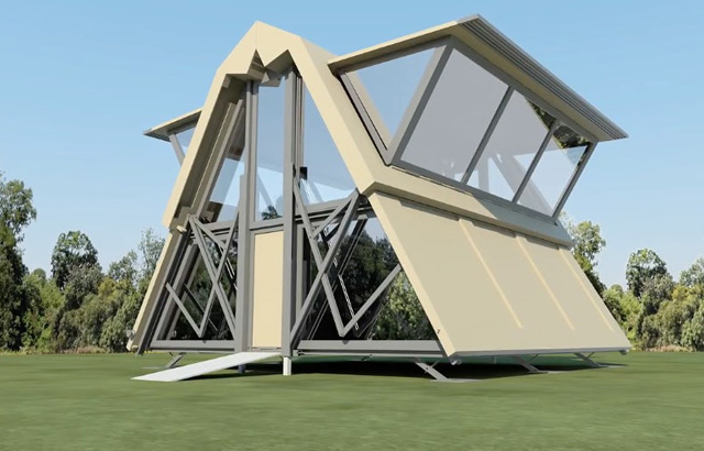 Pronalazak lepog komada zemlje i spremnost za početak izgradnje kuće svojih snova više ne mora da bude stresan posao. Umesto da se narednih nekoliko godina vreme troši na bavljenje stresom usled upravljanja građevinskim radnicima, zamislite da vam kamion donese upakovanu kuću koja se pritiskom na dugme raspakuje za manje od deset minuta. Kompanija Ten Fold Engineering sa sedištem u Velikoj Britaniji razvila je niz modularnih, samorasklapajućih konstrukcija koje se mogu odmah rasklopiti bez potrebe za kopanjem temelja, građevinskim radnicima i dizalicama.