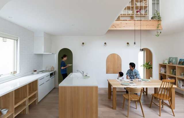 Ovu kompaktnu porodičnu kuću u Japanu karakterišu lučni otvori i zakrivljeni zidovi a projektovao ju je arhitektonski studio Alts Design Office.