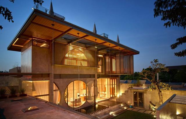 Ovu indonežansku kuću i studio koji je Realrich Sjarief projektovao za sebe karakterišu krugovi i istaknuti lukovi. Arhitekta je izrazio svoju ljubav prema geometrijskim oblicima kroz kružne prozore, koji se otvaraju prema napred kako bi se stvorili upareni polukružni paneli.