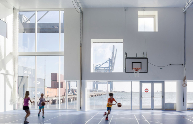 Igralište je postavljeno na krov prizemlja kako bi se moglo uživati u pogled na luku.