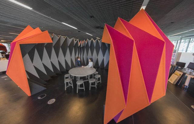 Kancelarije otvorenog tipa (open-plan offices) su sjajne u teoriji, ali njihova bučna priroda može sastanke učiniti nepodnošljivim. Leanne Zilka iz Zilka Studio je pronašla pop-up rešenje u obliku „PleatPod“-a. Ovo je zapravo paviljon koji je napravljen od materijala koji apsorbuju zvuk, a konstruisan je po uzoru na origami tehniku savijanja. Privlačan prostor za sastanke je naručio RMIT University i kreiran je u saradnji sa dizajnerkom tekstila Jenny Underwood.