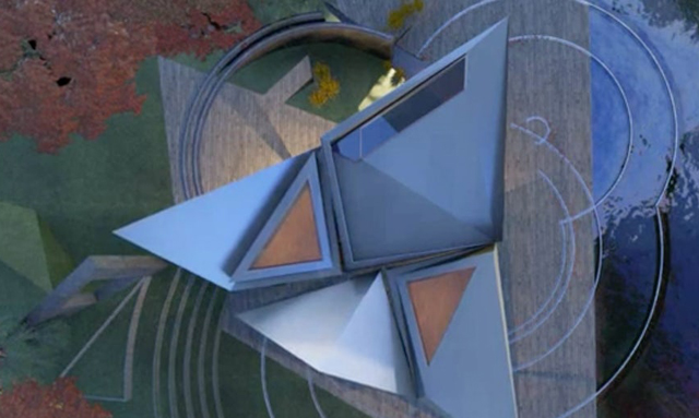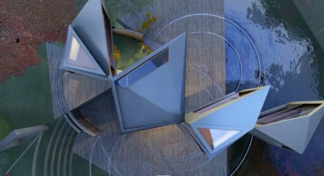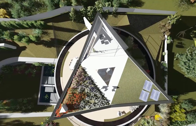 Trouglasti gornji nivo je podeljen na tri dela: glavna spavaća soba, trpezarija i dnevna soba. Prvobitni plan je bio da ovaj gornji, trouglastni nivo sedi na rotirajućoj platformi, koja će mu omogućavati da se rotira i zauzima određeni položaj koji će obezbediti pogled na isti pejzaž iz različitih soba tokom dana.