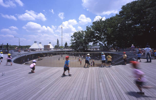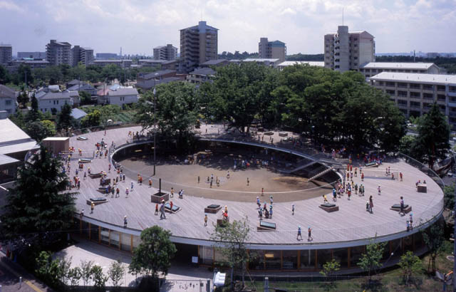 Ravan, ovalni krov nalik igralištu na objektu obdaništa u Tokiju omogućava deci da se igraju u okviru njega i beskonačno trče u krug. Ovaj projekat osvojio je nagradu „2017 Moriyama RAIC International Prize“.