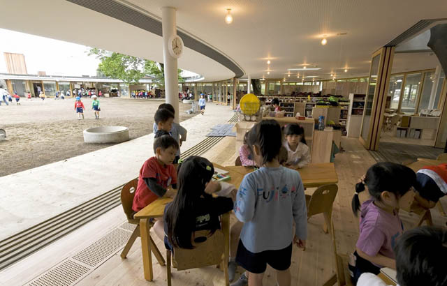 Umesto da se deci nameću fizičke prepreke, arhitekta iz Tokija, Takaharu Tezuka projektovao je obdanište kao kontinuirani prostor koji omogućava neometano učenje i igru.