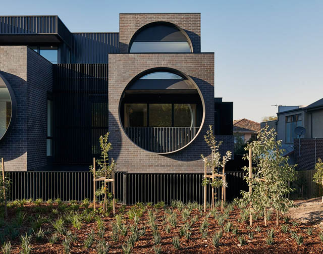 Šest velikih okruglih prozora su u fokusu ovog stambenog bloka u Melburnu koji je projektovala lokalna firma BBK Architects. Otvori služe da bi se u enetrijer unela velika količina prirodnog osvetljenja.