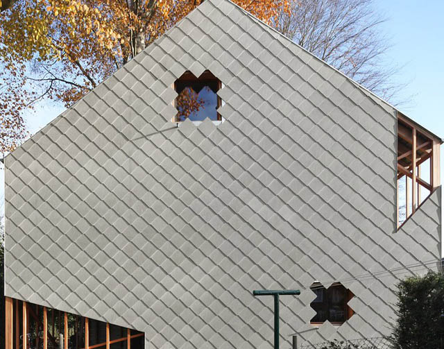 Niz prozora različitih veličina obezbeđuje ovoj porodičnoj kući u Šigi poglede sa različitih visina. Kouichi Kimura je pustio da neke sobe gledaju jedna na drugu i koriste uski prozor da bi obezbedili pogled na obližnje jezero.
