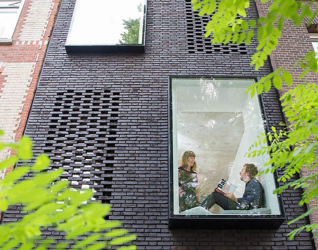 Prozori ove uske kuće u Roterdamu uključuju dve ispupčene staklene kutije. Postoji i nekoliko „skrivenih" prozora koji se pojavljuju samo noću.