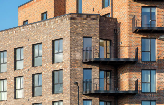 Okvir od CLTa pokriven je fasadom od cigle u edvardskom i viktorijanskom arhitektonskom stilu kao što su susedne terase i magacini.