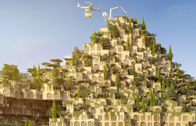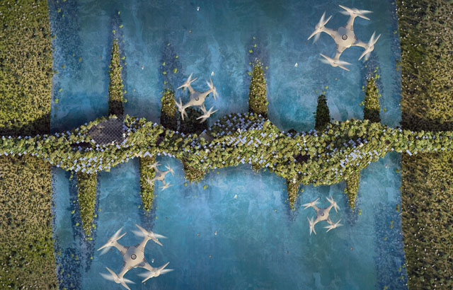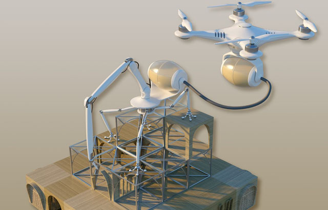 Slika 5. Prikaz kako dron puni 3D robot štampač (foto: Vincent Callebaut Architectures)