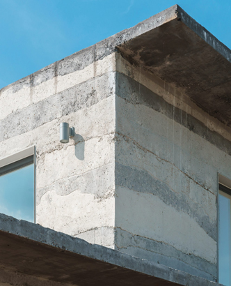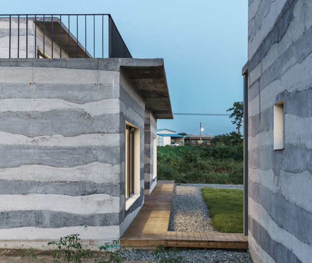 Prugaste fasade ovih kuća u blizini južnokorejskog grada Icheona su rezultat eksperimentisanja arhitektonske firme STPMJ koja je pokazala kako se promenom sastava betona menjaju i njegova svojstva. Osnivači firme STPMJ Seung Teak Lee i Mi Jung Lim opisali su „Stratum House“ kao pokušaj da se simuliraju geološke strukture tako što će se formirati betonski zidovi od slojeva koji su od različitih mešavina materijala i od betona različitih karakteristika.