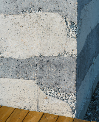 Da bi kreirali različite tonove i teksture slojeva, projektni tim je prilagodio vrste agregata, količinu pigmenta i odnos vode i cementa koji se koristi za izradu betona. Izlivanje betona za formiranje zidova dva objekta, sa različitom mešavinom svakog dana je trajalo 22 dana. Ishod su prugasti zidovi sa nejednakim slojevima.