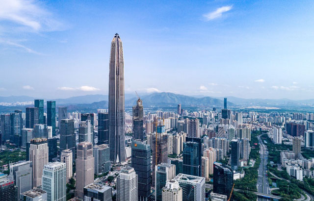 Kulu „Ping An Finance Centre“ visoku 599m u Šendženu u Kini projektovala je firma Kohn Pedersen Fox (KPF). Ona je rangirana na 4. poziciji na svetskoj listi najviših zgrada koje određuje CTBUH. Ovu kulu karakteriše fasada od nerđajućeg čelika koja pruža zaštitu od slane priobalne atmosfere grada i jakih vetrova.