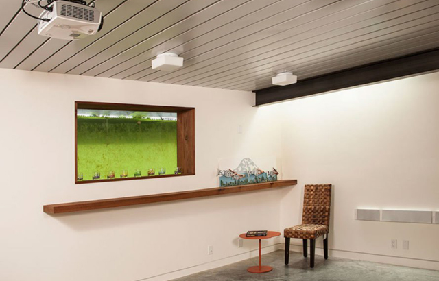 Prirodno osvetljenje i prekrasan pogled ka Sijetlu pružaju se kroz tri velika trostruko zastakljena prozora koji idu od poda do plafona. Kako bi se smanjio gubitak energije, zidovi i krov su obloženi izolacijom (pena u spreju) maksimalne debljine. Mali zeleni krov takođe pomaže u izolaciji. Niz solarnih panela od 5,43kW koji je pričvršćen za metalni krov snabdeva kućne LED-aparate, uređaje sa niskom potrošnjom energije i bojler za vodu (sa rezervoarom od 80 galona) za hidraulični sistem podnih obloga. Takođe je postavljen i izmenjivač toplote za prikupljanje toplote iz jezera.