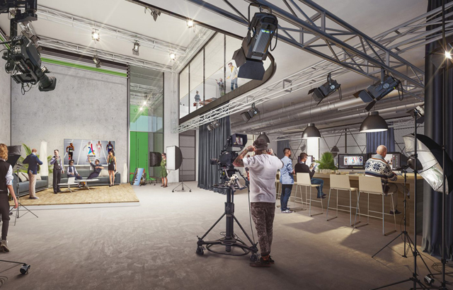 Ispresecani prostori teže ka zajedničkom foajeu, koji gleda na nivo ispod gde se nalaze trening i produkcijski studiji, dajući tako posetiocima mogućnost da na licu mesta vide stvaranje filmova.