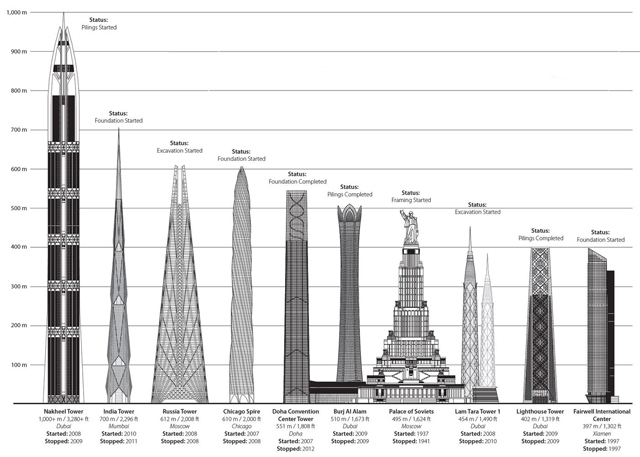 Slika 1. 10 najviših nebodera koji nikada nisu završeni (foto: CTBUH)