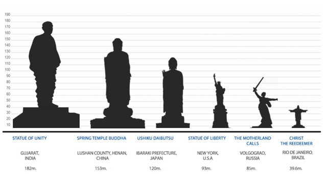 Slika 1. Poređenje visina statua (foto: Statue of Unity)