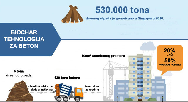 „Blizu 50 kilograma drvnog otpada je dovoljno da se iskoristi za proizvodnju tone betona", objašnjava Kua Harn Wei, istraživač na projektu. „Obično je potrebno 0,5 kubnih metara betona za izgradnju površine veličine 1m² u Singapuru. Ovo znači da treba da se reciklira oko šest tona drvenog otpada kako bi se izgradila tipična četvorosobna stambena jedinica površine od 100 kvadratnih metara."