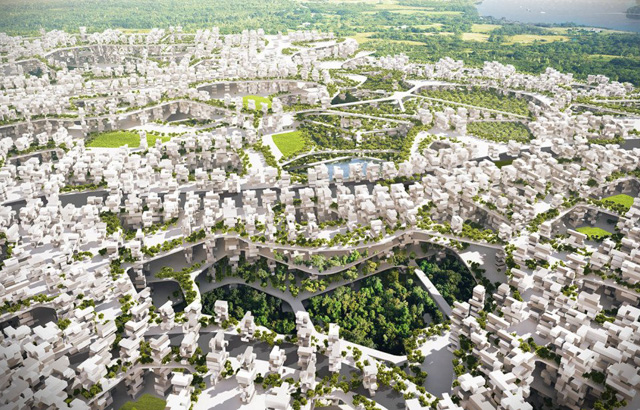 Pobednički predlog akcenat stavlja na pešake i podržava rastuću populaciju sa projektom koji karakterišu naslagane horizontalne konstrukcije. Ova revolucionarna tehnika, koja se zove „Inverted Archaeology“, gradi grad-državu u uzastopnim privremenim slojevima kako bi formirala samodovoljno, kompaktno, gusto, integrisano i otporno urbano tkivo. Ovo je tranzitno orijentisan razvoj koji postiže optimalnu efikasnost lokacije i ublažava efekat staklene bašte koji se u ovako gustom okruženju javljao emitovanjem gasova od automobila. Alge, organizmi koji ne zahtevaju u značajnoj meri sunčevu svetlost, bi se gajile na donjem delu zgrada kako bi se obezbedio čist izvor energije.