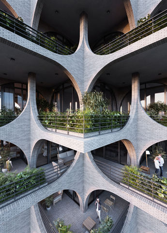 „Mi smo uglavnom gledali kako je ranije građeno u sredozemnim regijama. Kod projektovanja zgrada u oblastima gde vlada topla klima nije stvar u maksimizaciji staklenih fasada i klima uređajima. Ovde se radi o projektovanju koje sa jedne strane nudi pogled a sa druge minimizira otvorenost ka direktnoj sunčevoj svetlosti. Luk je izraz ovog pristupa i istovremeno poboljšava konstrukciju objekta i energetske performanse“, rekao je Chris Precht, suosnivač kompanije Penda.