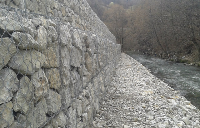 - Visoka otpornost i trajnost forme – Osigurani su čeličnim rešetkama ili žicom koja je pocinkovana, po želji plastificirana, i ispunjena kvalitetnim kamenim materijalom. Tokom vremena pore se popune sitnim česticama i cela konstrukcija obraste vegetacijom, što povećava čvrstoću i otpornost.