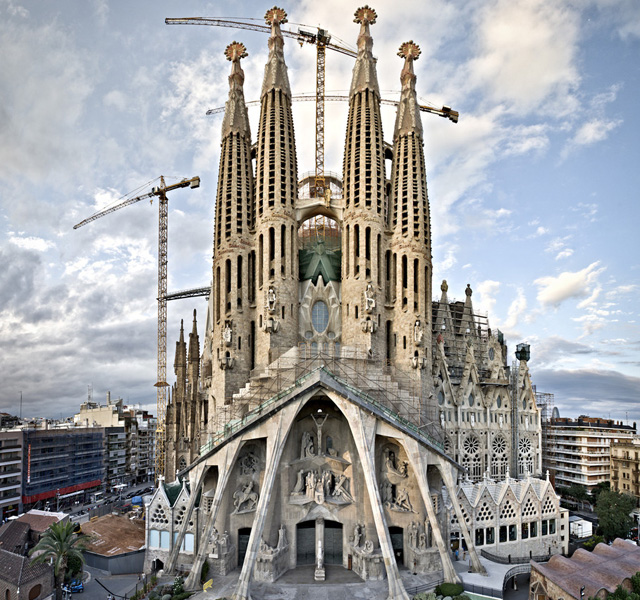 Projekat koji je u toku od 1882. godine, monumentalna Rimokatolička crkva Antonija Gaudija nalazi se među najpoznatijim primerima nedovršenih arhitektonskih dela. Gaudi je na godinu dana preuzeo kontrolu nad izgradnjom crkve, preoblikujući projekat koji je bio samo delimično realizovan do njegove smrti 1926. godine. Radovi su prekinuti tridesetih godina prošlog veka zbog Španskog građanskog rata, a većina arhitektonske dokumentacije je izgubljena kada su vojnici tokom sukoba uništili njegovu radionicu. U kasnijim fazama izgradnje, projekat se zasnivao na rekonstruisanim verzijama i savremenim adaptacijama Gaudijevih planova. Sadašnja izgradnja se finansira ulaznicama posetilaca i očekuje se da će konstrukcija i svih 18 crkvenih kula biti završeni do 2026. godine, a svi njegovi ukrasni elementi konačno bi trebali da budu postavljeni do 2032. godine, što je punih 150 godina nakon postavljanja temelja.