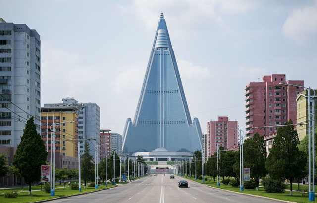 Hotel Ryugyong je izuzetno istaknuta građevina u okviru gradskog horizonta Pjongjanga i najviša konstrukcija u Severnoj Koreji koja je počela sa izgradnjom 1987. godine. Rad na projektu je tekao sporadično s obzirom na to da je gradnja bila prekinuta 1992. godine. Piramidalni objekat visine 330 metara trebalo je da bude završen do 1989. godine, ali su političke promene onemogućile ovaj ambiciozni cilj, jer je Severna Koreja pala u velika previranja nakon pada Sovjetskog Saveza. Projektovana od strane severnokorejske firme Baikdoosan Architects & Engineers, zgrada mešovite namene je bila prazna betonska školjka do 2008. godine kada je finansijski doprinos egipatskih investitora omogućio postavljenje prozora i završetak eksterijera zgrade. Otvaranje hotela je planirano 2012. godine pa potom 2013, ali ovi planovi su trenutno na čekanju jer je izgradnja u toku. Detaljan status projekta i procenjeni vremenski okvir završetka nisu poznati.