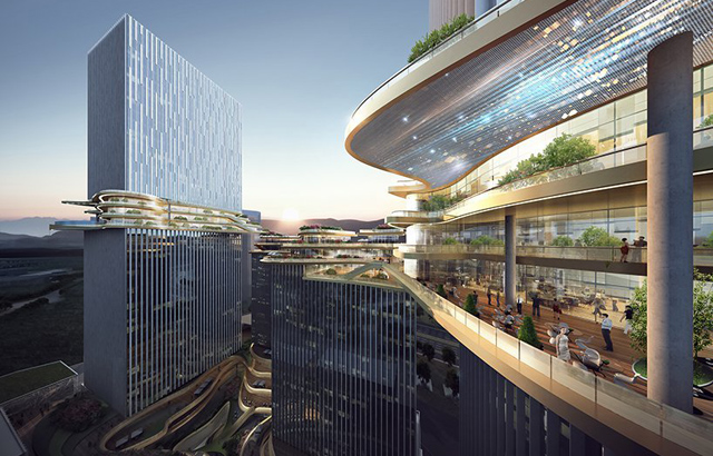 Novi projekat firme Aedas čine četiri kule različitih visina mešovite namene u Džuhaju u Kini, koje izdvaja to što su povezane petljom, odnosno stazom koja se sastoji iz više nivoa koji povezuju ove konstrukcije i stvaraju „trodimenzionalni, vertikalni pejzaž". U nadi da će postati centralni deo grada „Hengqin CRCC Plaza“ iskoristio je strateško pozicioniranje i formu u cilju maksimiziranja ekonomske koristi i stvaranja snažnog jezgra zajednice, gde je otvoreni prostor u službi radnog okruženja.