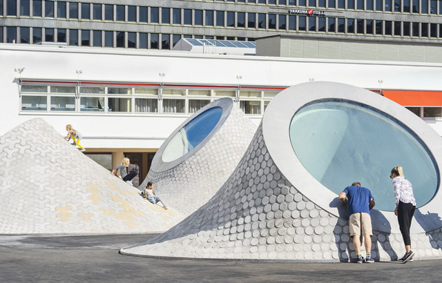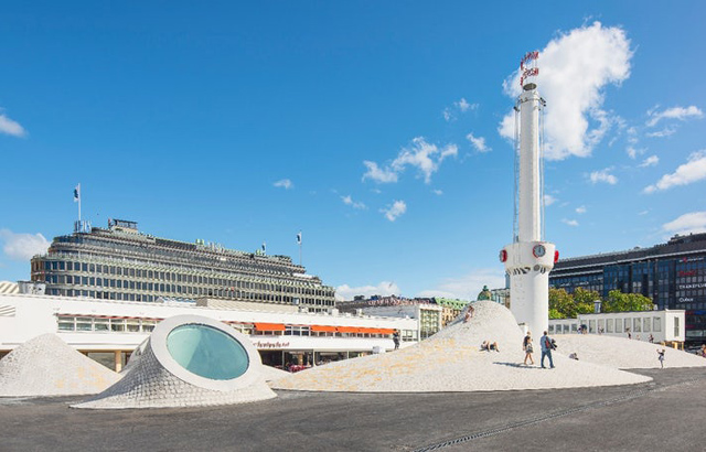 Rekonstrukcija Lasipalatsijevog trga u Helsinkiju dovela je do pojave skupa sličnih kupola koje izviruju iz površine. Talasasti javni prostor je sam po sebi već privlačan, ali ispod njega se skriva novi Muzej savremene umetnosti koji bi po svemu sudeći trebao da privuče veliki broj posetilaca. Brežuljci i uzvišenja koja se sada nalaze na Lasipalatsijevom trgu nalikuju skejt parku, ali zapravo su otvori sa prozorima koji su u funkciji svetlarnika i osvetljavaju galerijske prostore koji se nalaze ispod površine zemlje. Iskopano je negde oko 13.000 kubnih metara kamena kako bi se napravili putevi za ove izložbene dvorane koje čine potpuno novi Muzej savremene umetnosti „Amos Rex“.