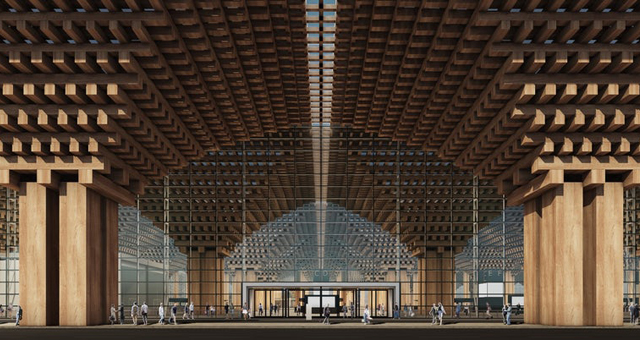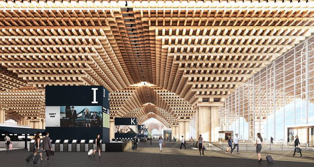 Na prednjem delu nove zgrade terminala biće fasada sa velikim drvenim stubovima i motivima obrnutih piramida koji se nastavljaju unutra. Projekat veoma podseća na „Yusuhara Wooden Bridge Museum“ Kenda Kume u Japanu. Zaista, bilo je i nekih kontroverzi zbog njihove sličnosti.