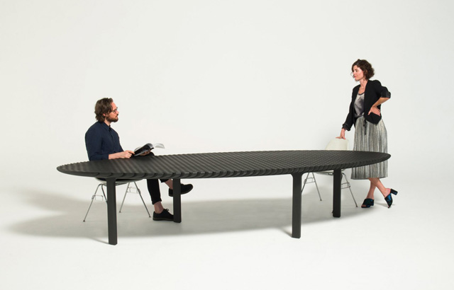 Listovi papira postavljeni u smoli korišćeni su za stvaranje rešetkaste konstrukcije ovog stola koji je napravio Heatherwick Studio i koji se „transformiše tako da nudi dve forme".