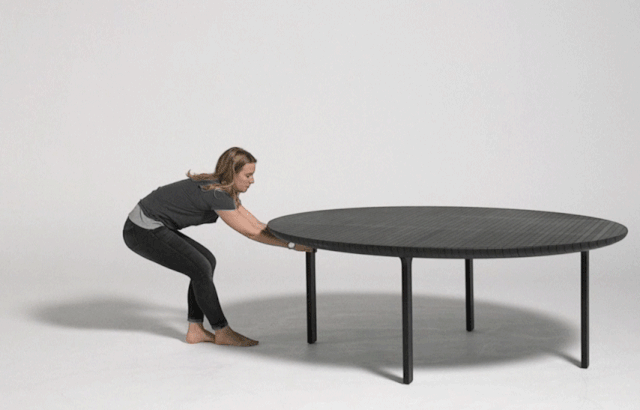 „Studio je eksperimentisanjem sa pivot mehanizmom, prvo stvorio prototip ovog koncepta i primenio ga na niz drugih objekata, koji su ga razvijali i menjali tokom godina", rekli su iz Studija za Dezeen. „Nakon istraživanja različitih formi, dobijeni sto koji se širi postao je vema dobar izraz ove ideje."