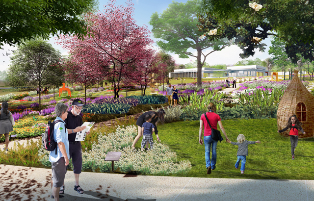 Projekat koji sadrži četiri nove zgrade uronjene u krajolik, ima za cilj stvaranje besprekornog spoljašnjeg i unutrašnjeg iskustva za posetioce parka. Izgrađen između dva brda, „Explorations V Children’s Museum“ koji služi kao utočište u parku pružiće pogled sa krova na lokaciju. Staze na visini od 5,5 metara stvaraju prostore za igru.