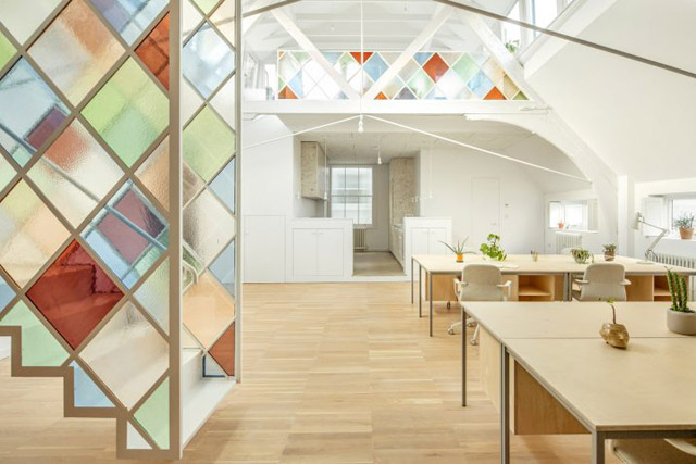 Dijamantski postavljeni vitraži razdvajaju kooperativni prostor u severnom Londonu, koji kao da je potvrda svojoj prošlosti jer se na tom mestu nalazila metodistička crkva.