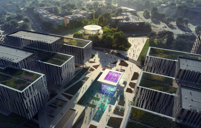 Na severnom ulazu će se nalaziti paviljon i trg „normalne“ forme, dok će južni kraj imati ovalnu nadstrešnicu postavljenu u parku.