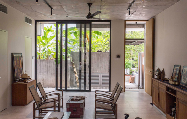 Beton sa tradicionalnih tropskih kuća je takođe bio inspiracija za ovu kuću. Razdvojena oplata od bambusa dala je grubu, žljebastu završnicu na površini betona.