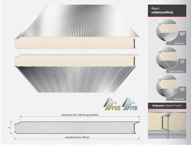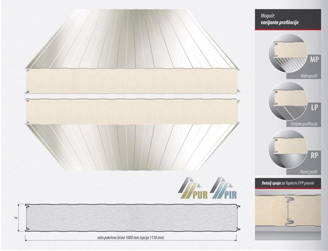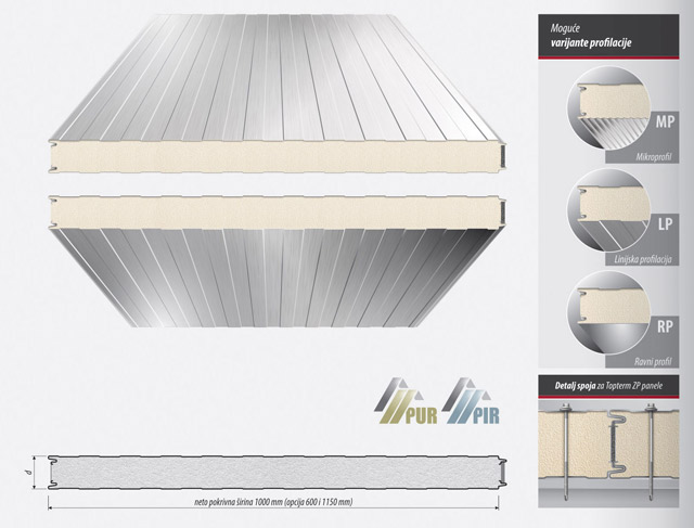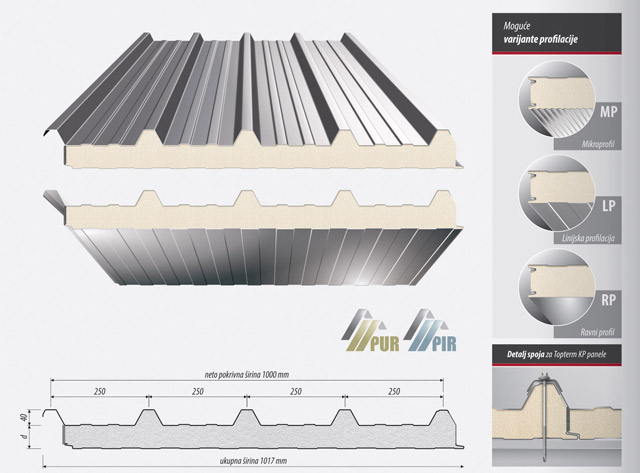 Asortiman koji je ponuđen, poliuretanski, protupožarni i paneli od kamene vune u krovnoj, fasadnoj, zidnoj, frigo ili agro izvedbi postali su nezaobilazan materijal u savremenoj industrijskoj gradnji. Prednost ovih materijala je vrhunska toplotna izolacija (najbolja od svih građevinskih materijala), mogućnost montaže u svim vremenskim uslovima (suva gradnja), postojan dizajn i asortiman boja, dug vek trajanja bez održavanja, brza i jeftina montaža itd.