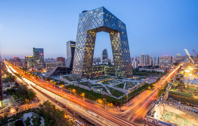 „CCTV Tower“, projekat Rem Koolhaasa i Ole Scheerena iz 2008. godine, postao je ikona u gradskoj poslovnoj četvrti Pekinga.