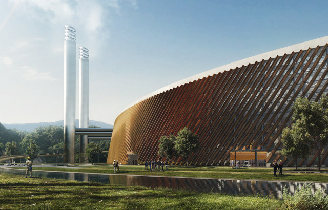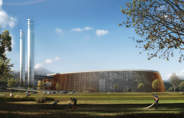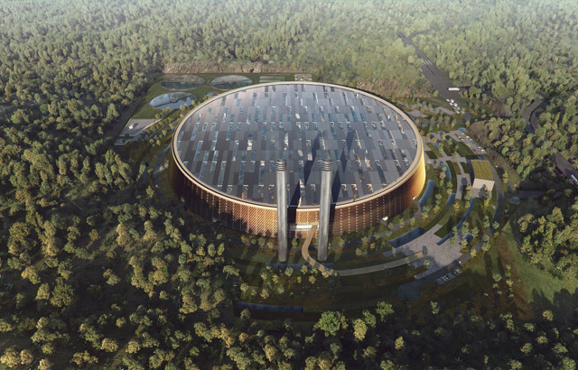 Zgrada ima kružni oblik koji kontroliše otisak konstrukcije i količinu iskopa potrebnu za gradnju na lokaciji. Šema uključuje celo postrojenje i pomoćne zgrade u jednu konstrukciju koja „razbija“ tradicionalni pravougaoni raspored industrijskih objekata. Krov od 66.000m² je projektovan da bude pokriven sa do 44.000m² fotovoltažnih panela, što omogućava da postrojenje pruža čistiji način da se nosi sa gradskim otpadom, već i i doprinesi snabdevanju grada obnovljivom energijom.