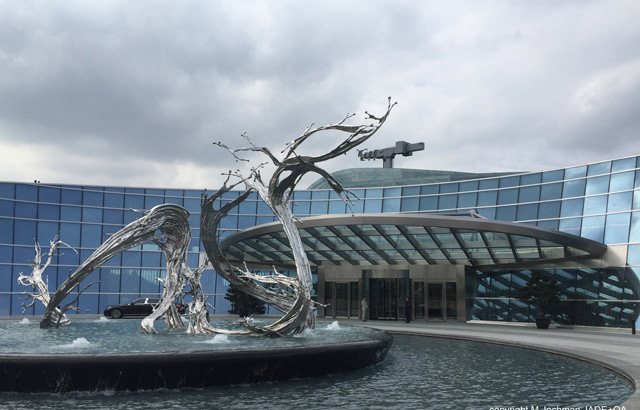 „Zeleni brežuljak", dvospratni zeleni krov koji pokriva deo zgrade iznad nivoa zemlje, „viseći vrtovi", konveksne i konkavne sobe za goste s-forme i centralni stakleni „vodopad".